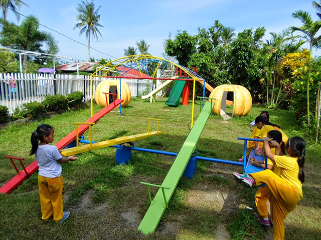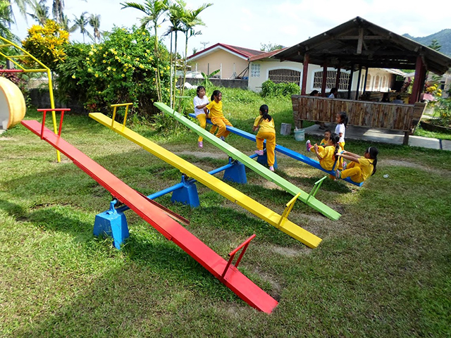 We installed new fences to protect children from crossing the street while the cars are passing. We also painted the playground.